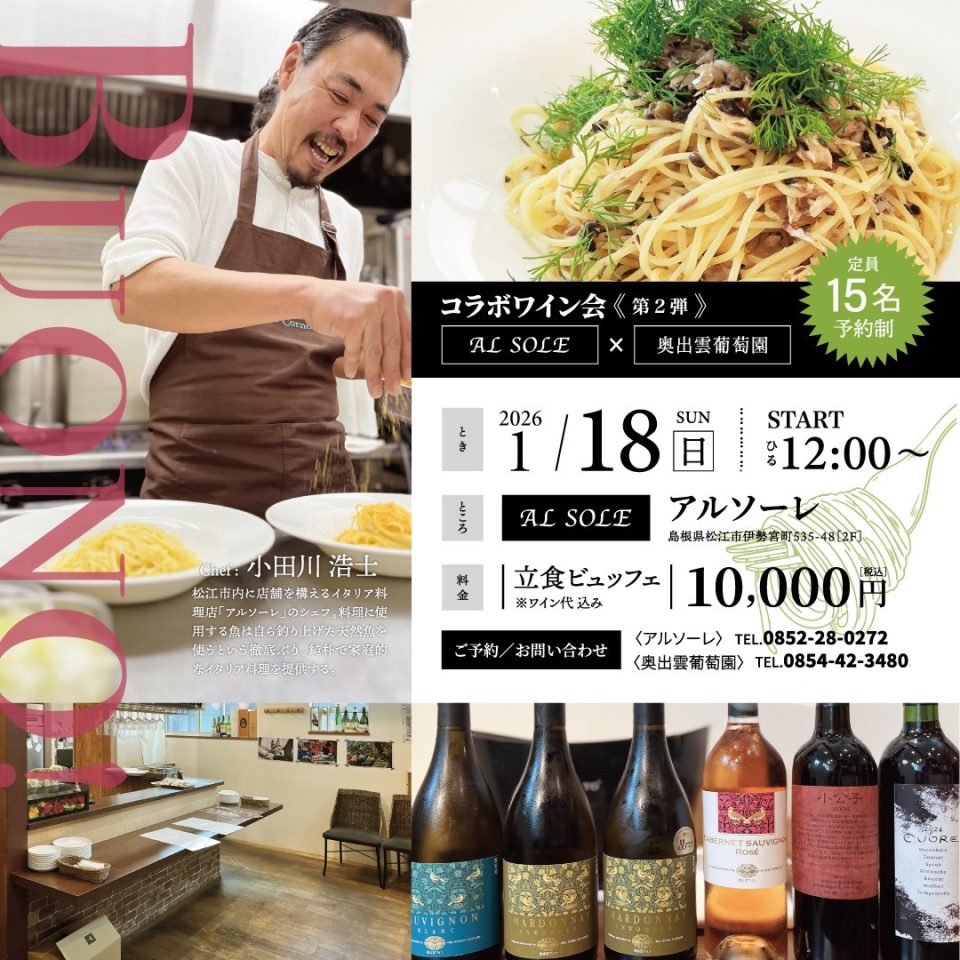昨年5月に大好評だったアルソーレさん✖️奥出雲葡萄園のコラボイベントが早くも2回目の開催です‼️